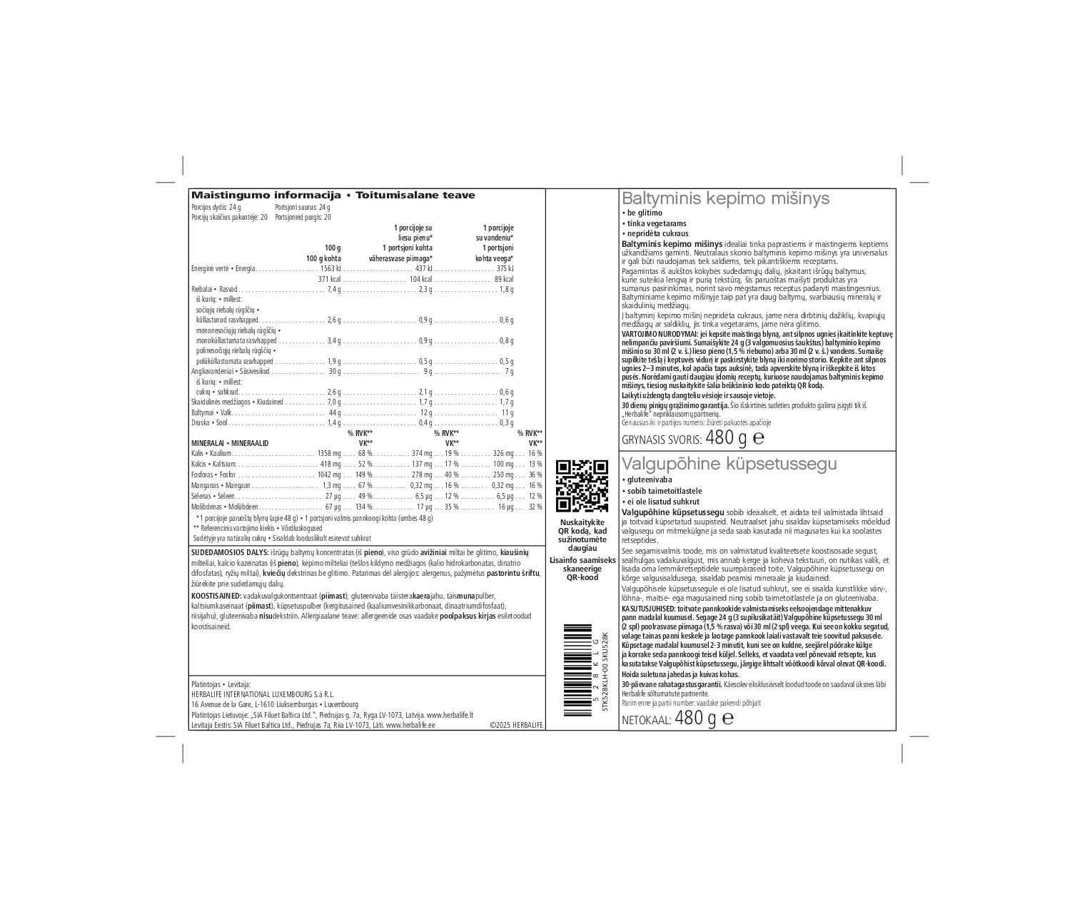 Sudėtyje yra tik kokybiškos sudedamosios dalys, įskaitant išrūgų baltymus, avižų miltus, 6 rūšių pagrindinius mineralus ir skaidulines medžiagas. Mišinys yra visavertis įprastų kvietinių miltų pakaitalas, jo skonis neutralus, o sudėtyje esantys baltymai suteikia sotumo jausmą2.